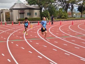 *6年女子100m:佐渡さん(6年)4位、男子1000m:神谷君(6年)1位
